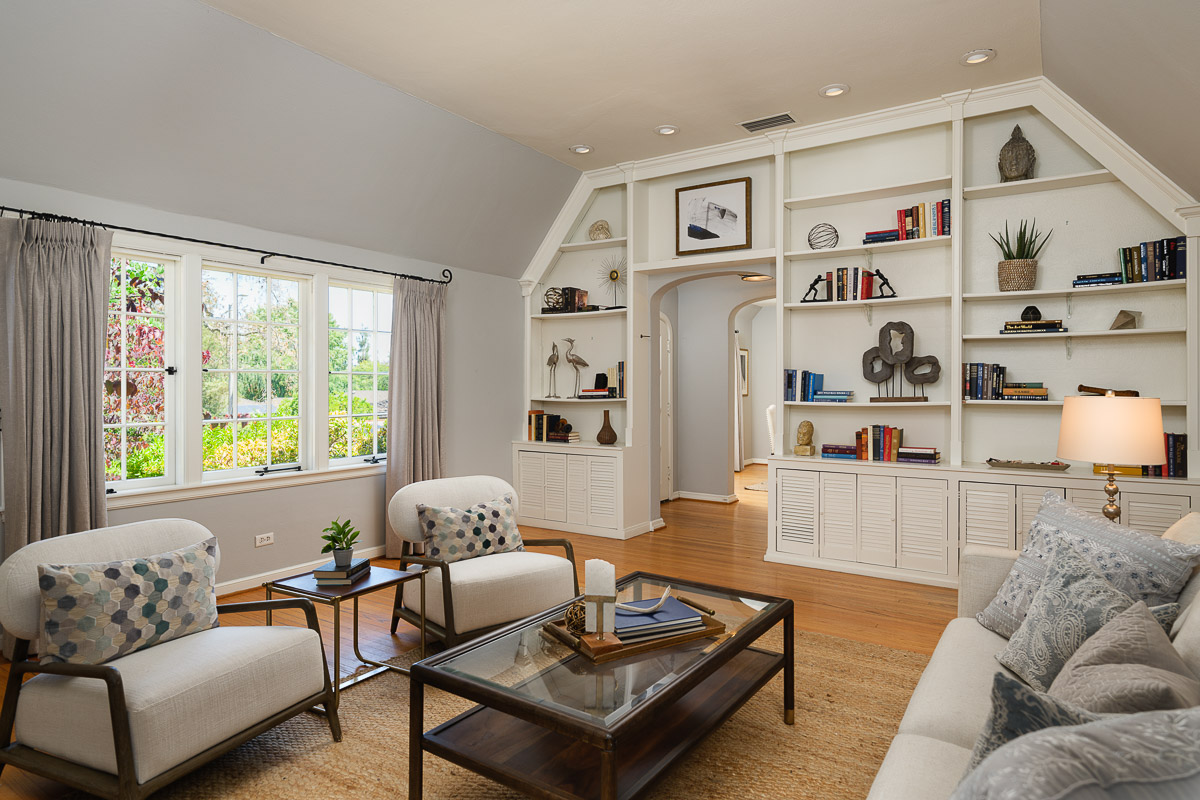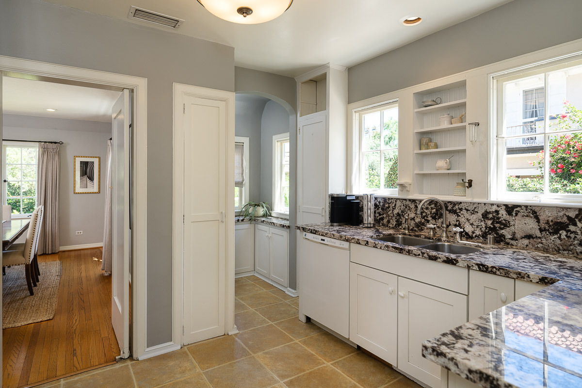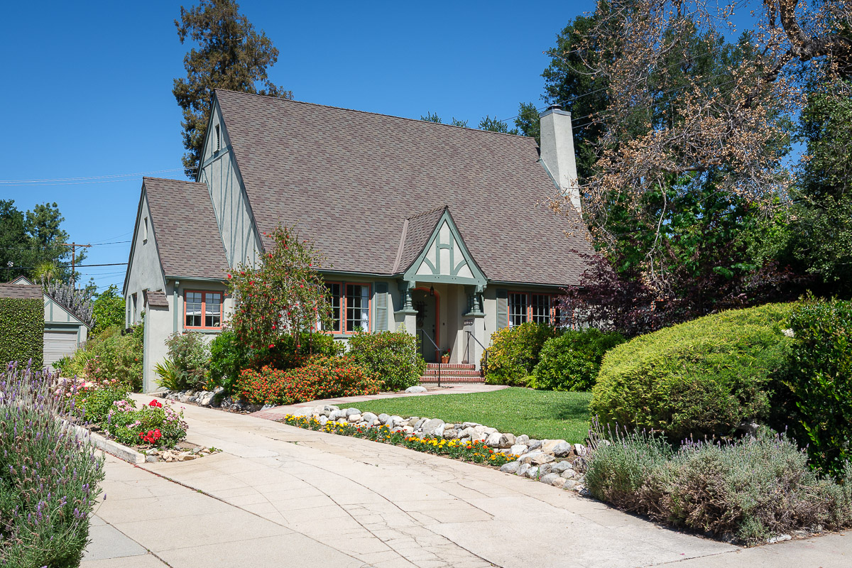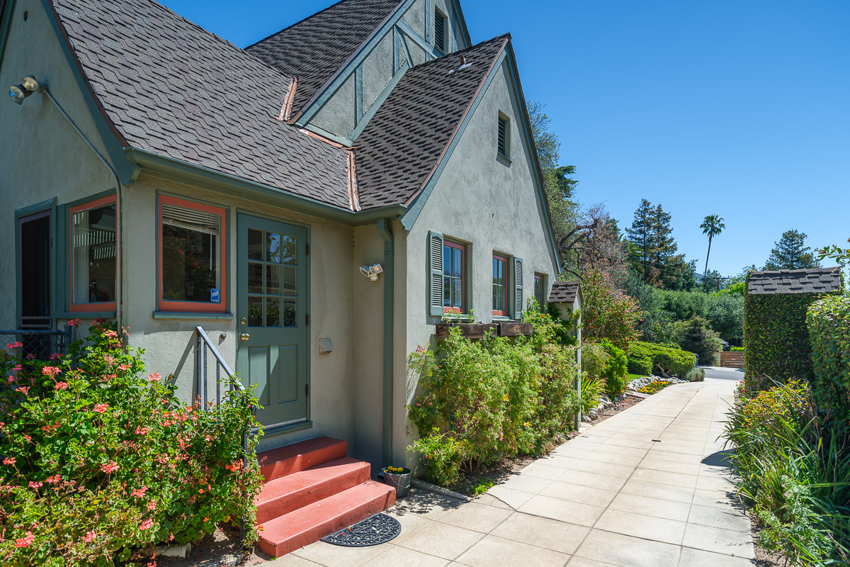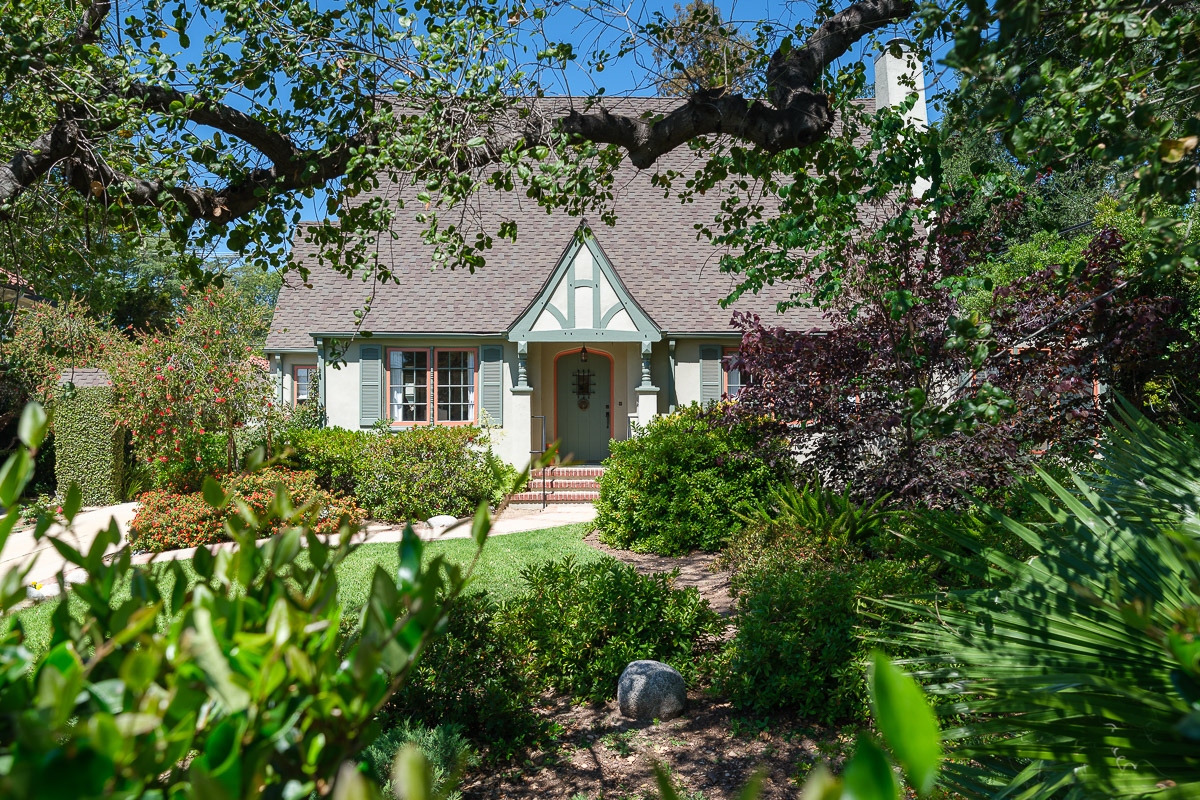 Welcome to this gracious storybook English style home set back behind a tall hedge and sited under a majestic California Live Oak tree on a serene, private lot. This three bedroom, two bathroom home is filled with elegant built-ins, old-world charm and character details throughout. The living room beckons you in with a stately stone fireplace, vaulted ceilings and tall, floor to ceiling bookcases. Off the living room is a charming, sunlit study or office that is a perfect space for work or reflection. The formal dining room is light-filled and offers the ideal space for dinners with family and friends. The kitchen is light and bright with crisp white cabinetry, arched doorways, granite counters and a pantry all with an adjacent laundry room.