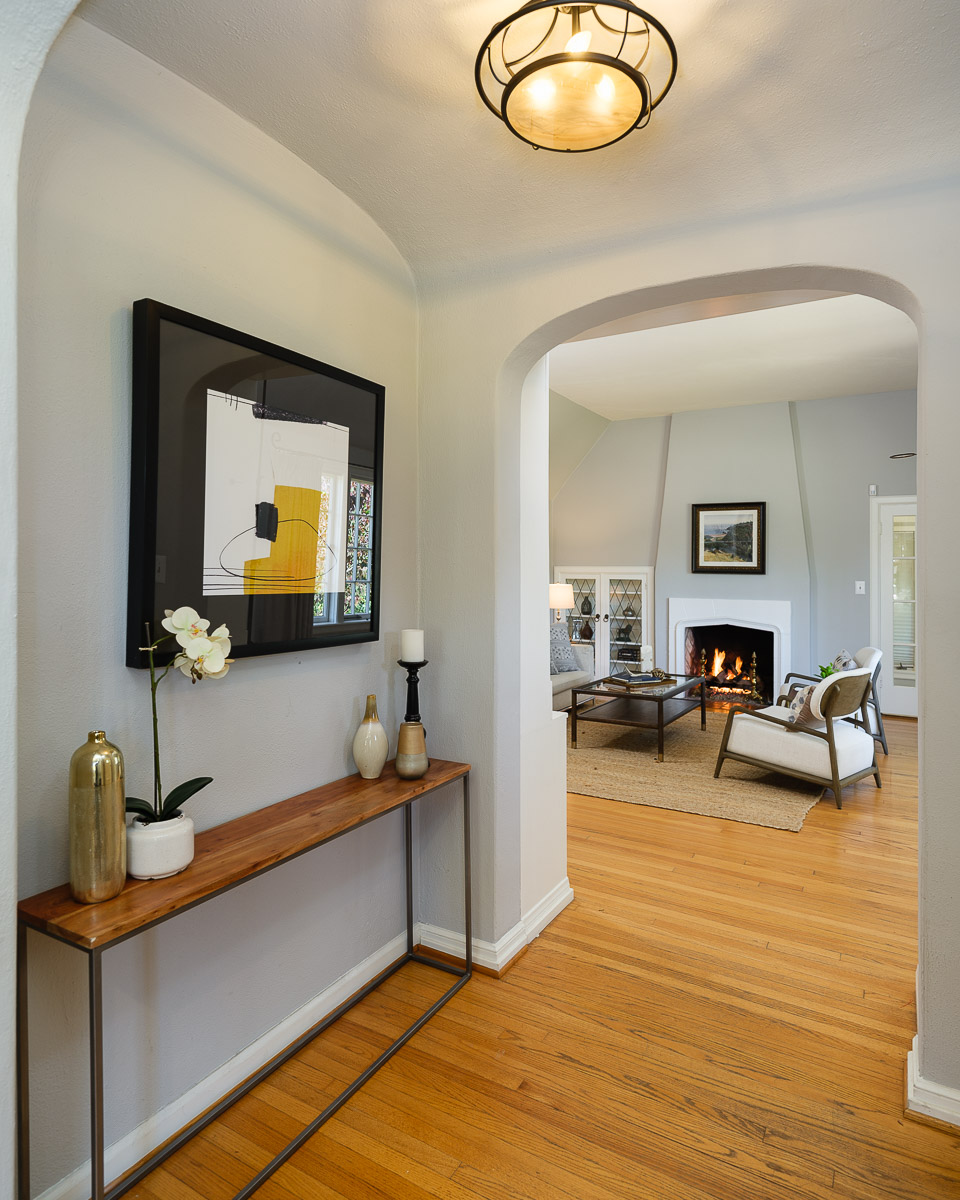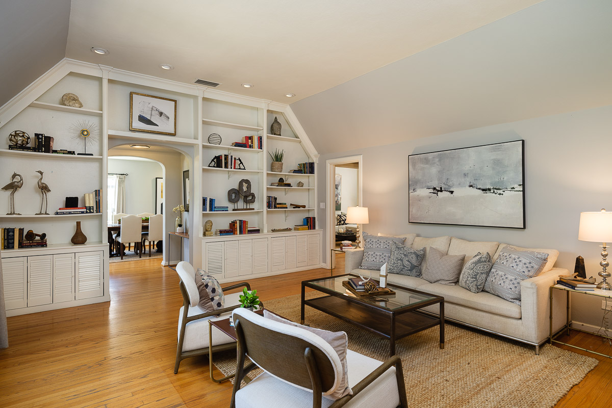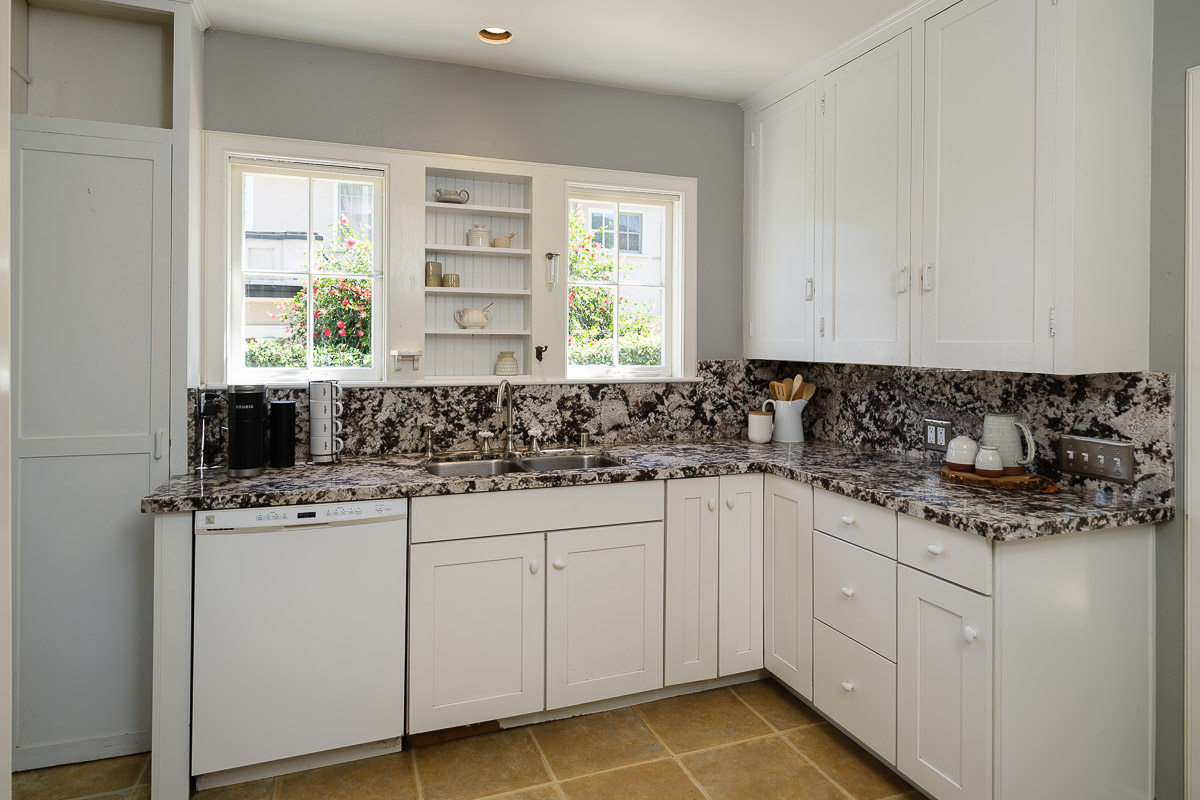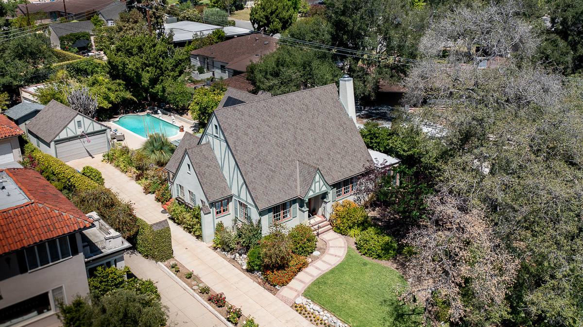 Welcome to this gracious storybook English style home set back behind a tall hedge and sited under a majestic California Live Oak tree on a serene, private lot. This three bedroom, two bathroom home is filled with elegant built-ins, old-world charm and character details throughout. The living room beckons you in with a stately stone fireplace, vaulted ceilings and tall, floor to ceiling bookcases. Off the living room is a charming, sunlit study or office that is a perfect space for work or reflection. The formal dining room is light-filled and offers the ideal space for dinners with family and friends. The kitchen is light and bright with crisp white cabinetry, arched doorways, granite counters and a pantry all with an adjacent laundry room.