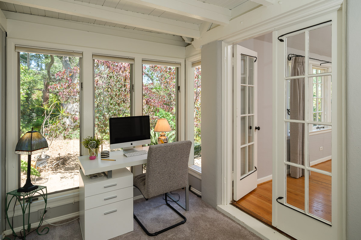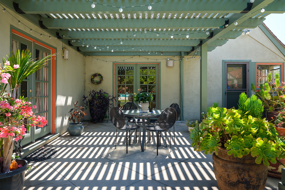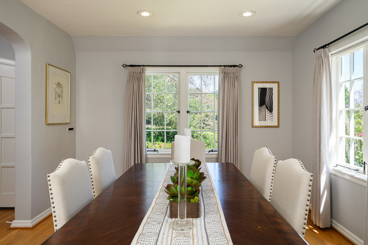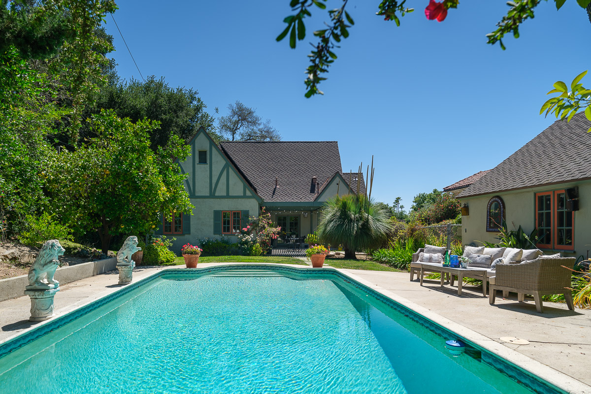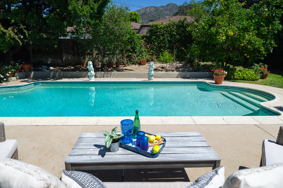 There are three bedrooms including an expansive master suite with a remodeled bath and doors that open to the shade dappled patio. There are two additional bedrooms, including the third bedroom that is used as a den and opens out, via French doors, to the expansive backyard that overlooks the incredible garden that wraps the sparkling pool. The grounds including mature fruit trees as well as an abundance of roses that make this home picture-perfect both inside and out. Don’t miss this gem in one of area’s most sought-after neighborhoods.