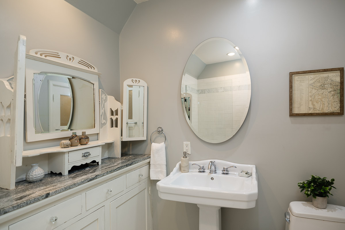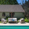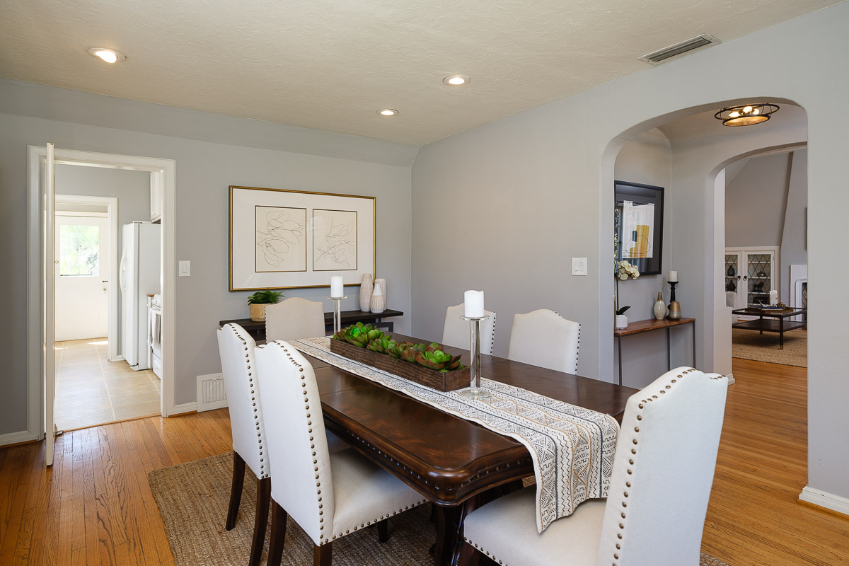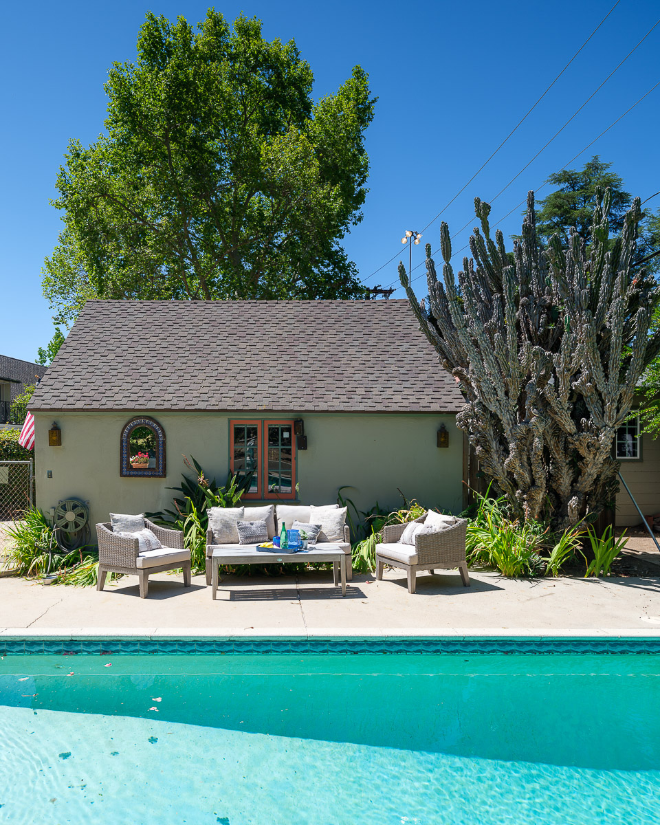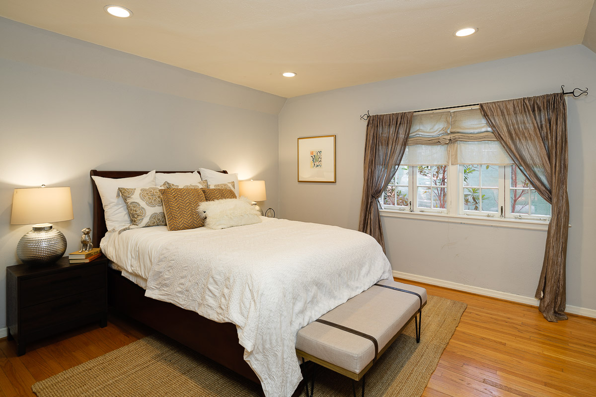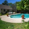 There are three bedrooms including an expansive master suite with a remodeled bath and doors that open to the shade dappled patio. There are two additional bedrooms, including the third bedroom that is used as a den and opens out, via French doors, to the expansive backyard that overlooks the incredible garden that wraps the sparkling pool. The grounds including mature fruit trees as well as an abundance of roses that make this home picture-perfect both inside and out. Don’t miss this gem in one of area’s most sought-after neighborhoods.